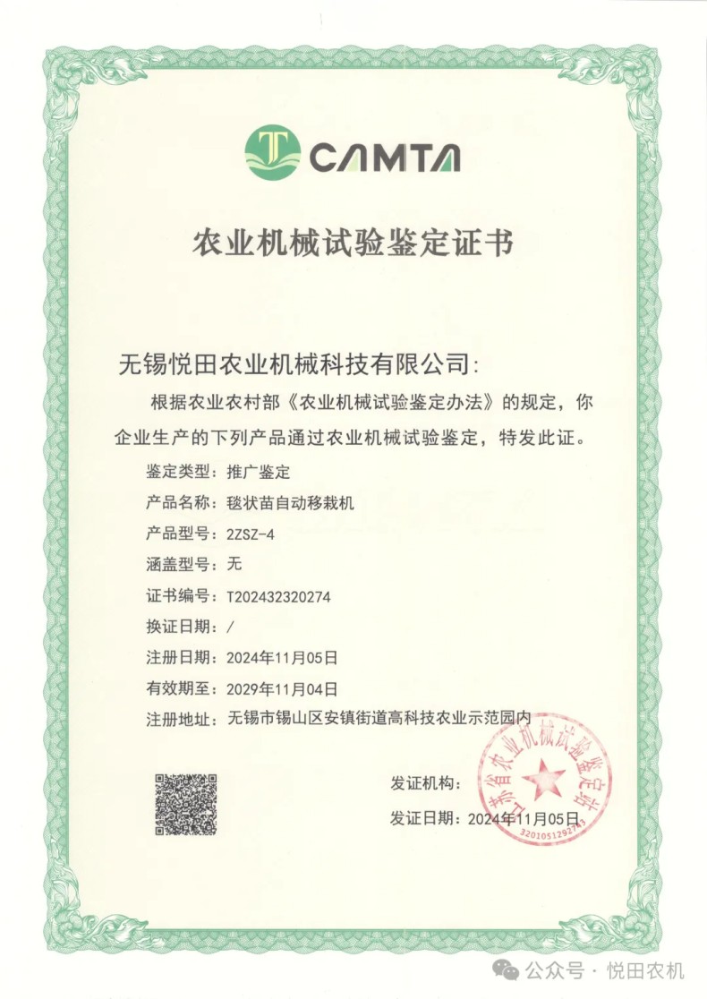 機械化,智能化是設施農(nong)業(ye)發展的(de)方向和根(gen)本,無錫悅田農(nong)機不忘(wang)初(chu)心,一直致力于新(xin)型農(nong)機研發,近(jin)日,2ZSZ-4毯狀苗自動移栽機通過了資(zi)質鑒定, 并(bing)到全國多(duo)地進行成果(guo)演示,受到了各級專(zhuan)家(jia),領導和業(ye)內人士的(de)高度認可(ke)。
